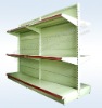 DC-19 Supermarket Shelf / Display Rack Features: 1) Standard size (single-side or double side): a) L: 900, 1,200mm b) W: 400, 450, 500, 550, 600, 650mm c) H: 1,500, 1,800, 2,000mm 2) Backboard: steel-backboard, volcano-backboard, pegboard, mesh backboard 3) Loading capacity: 120kg/level 4) Finish: powder coated 5)Packing: Export carton 6)DC-18: post and side footing are assembled by screws to save shipping cost. DC-19: post and side footing are welded for structure reason, but waste more space. 7)Can be produced according to customers' drawings or requirement. 8)Different colors for choice. 9)Corner Rack or End Rack 10)If there is plan of supermarket, please send to us for reference. 11)Lead Time: About 20-25 days after receipt of deposit. 12)Payment Terms: 30% deposit & 70& balance against delivery / copy of B/L or L/C at sight.
